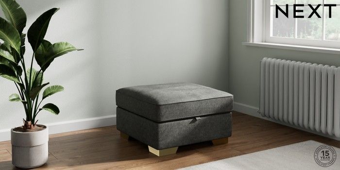 7.2.10 Stamford Storage Footstool Plush Chenille Dark Grey Square Angle - Brushed Brass | Made Click here to use our website with more accessibility support, for example screen readers
