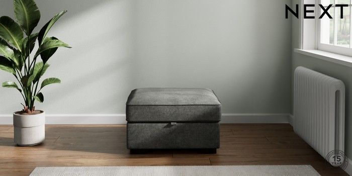 7.2.10 Stamford Storage Footstool Plush Chenille Dark Grey Square Angle - Dark | Made Click here to use our website with more accessibility support, for example screen readers