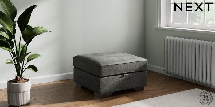 7.2.10 Stamford Storage Footstool Plush Chenille Dark Grey Square Angle - Gunmetal | Made Click here to use our website with more accessibility support, for example screen readers