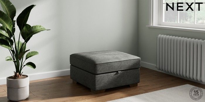 7.2.10 Stamford Storage Footstool Plush Chenille Dark Grey Square Angle - Mid | Made Click here to use our website with more accessibility support, for example screen readers