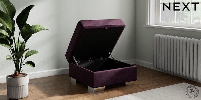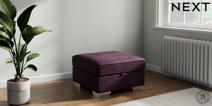 7.2.10 Stamford Storage Footstool Plush Chenille Dark Plum Purple Square Angle - Chrome Metal | Made Click here to use our website with more accessibility support, for example screen readers