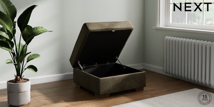 7.2.10 Stamford Storage Footstool Plush Chenille Moss Green Square Angle - Mid | Made Click here to use our website with more accessibility support, for example screen readers