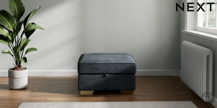 7.2.10 Stamford Storage Footstool Plush Chenille Slate Blue Square Angle - Brushed Brass | Made Click here to use our website with more accessibility support, for example screen readers
