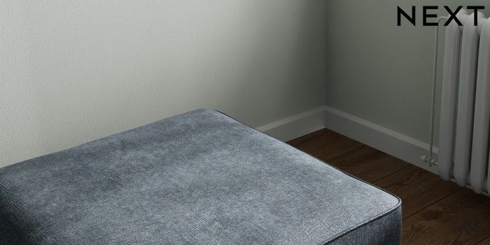 7.2.10 Stamford Storage Footstool Plush Chenille Slate Blue Square Angle - Chrome Metal | Made Click here to use our website with more accessibility support, for example screen readers