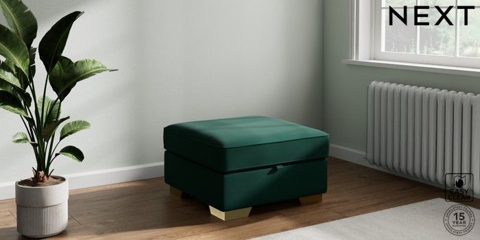7.2.10 Stamford Storage Footstool Plush Velvet Easy Clean Bottle Green Square Angle - Brushed Brass | Made Click here to use our website with more accessibility support, for example screen readers