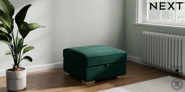 7.2.10 Stamford Storage Footstool Plush Velvet Easy Clean Bottle Green Square Angle - Light | Made Click here to use our website with more accessibility support, for example screen readers