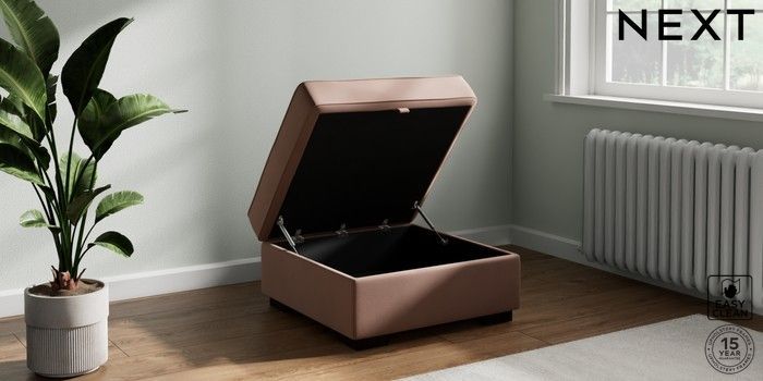 7.2.10 Stamford Storage Footstool Plush Velvet Easy Clean Mid Natural Square Angle - Dark | Made Click here to use our website with more accessibility support, for example screen readers