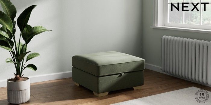 7.2.10 Stamford Storage Footstool Relaxed Linen Look Dark Green Square Angle - Light | Made Click here to use our website with more accessibility support, for example screen readers
