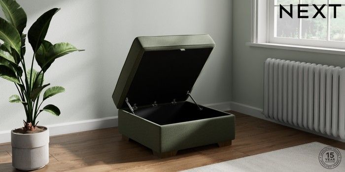 7.2.10 Stamford Storage Footstool Relaxed Linen Look Dark Green Square Angle - Mid | Made Click here to use our website with more accessibility support, for example screen readers