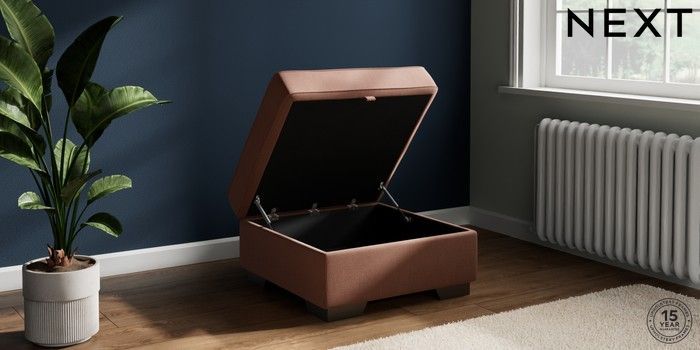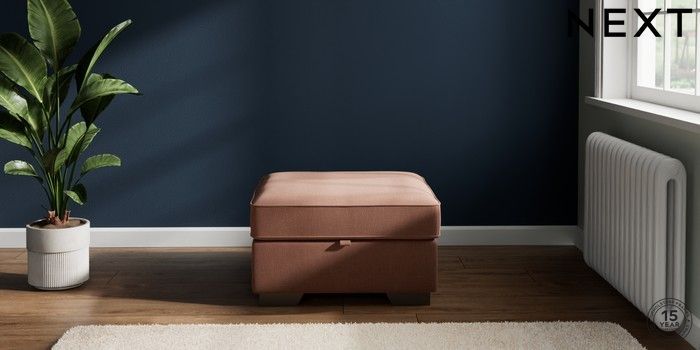 7.2.10 Stamford Storage Footstool Relaxed Linen Look Light Rust Brown Square Angle - Gunmetal | Made Click here to use our website with more accessibility support, for example screen readers