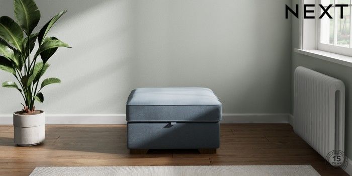 7.2.10 Stamford Storage Footstool Relaxed Linen Look Mid Blue Square Angle - Mid | Made Click here to use our website with more accessibility support, for example screen readers