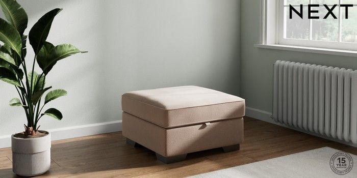 7.2.10 Stamford Storage Footstool Relaxed Linen Look Mid Natural Square Angle - Gunmetal | Made Click here to use our website with more accessibility support, for example screen readers