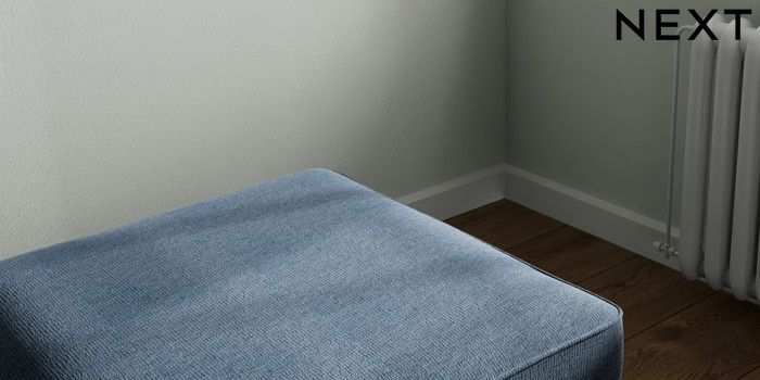 7.2.10 Stamford Storage Footstool Ripple Chenille Dark Blue Square Angle - Chrome Metal | Made Click here to use our website with more accessibility support, for example screen readers