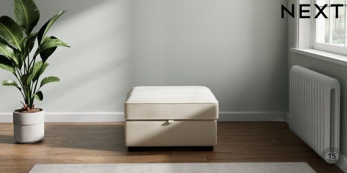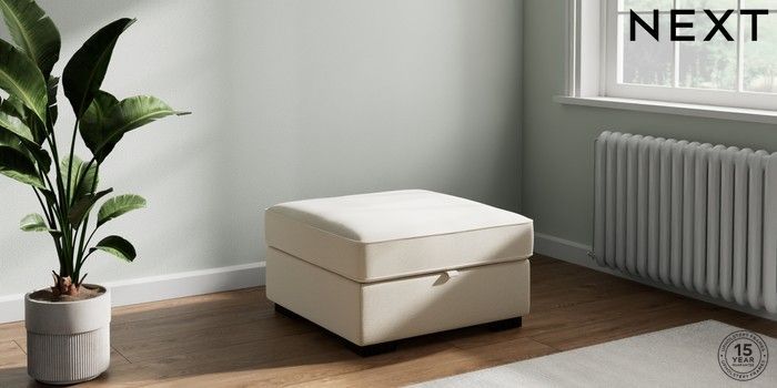 7.2.10 Stamford Storage Footstool Ripple Chenille Mid Moss Green Square Angle - Dark | Made Click here to use our website with more accessibility support, for example screen readers