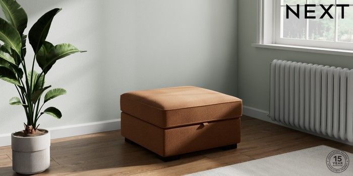 7.2.10 Stamford Storage Footstool Ripple Chenille Mid Rust Brown Square Angle - Dark | Made Click here to use our website with more accessibility support, for example screen readers