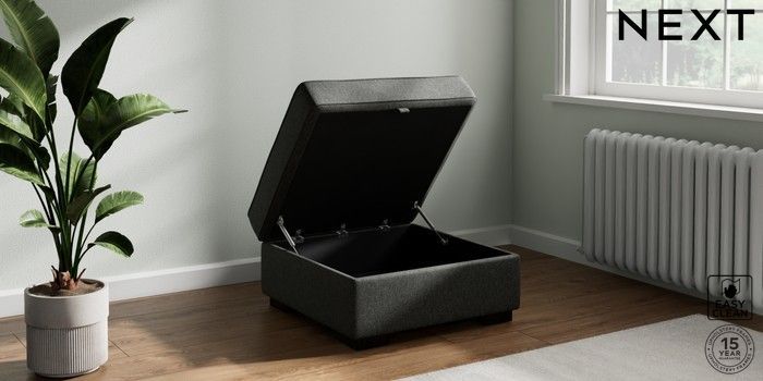 7.2.10 Stamford Storage Footstool Tweedy Blend Easy Clean Charcoal Grey Square Angle - Dark | Made Click here to use our website with more accessibility support, for example screen readers
