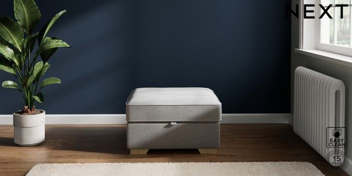 7.2.10 Stamford Storage Footstool Tweedy Blend Easy Clean Light Silver Grey Square Angle - Light | Made Click here to use our website with more accessibility support, for example screen readers