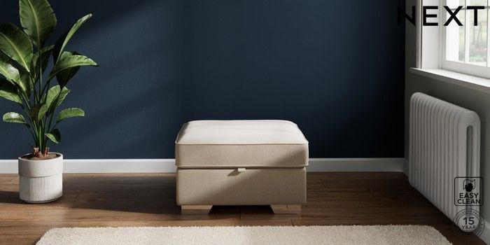 7.2.10 Stamford Storage Footstool Tweedy Blend Easy Clean Oyster Square Angle - Chrome Metal | Made Click here to use our website with more accessibility support, for example screen readers