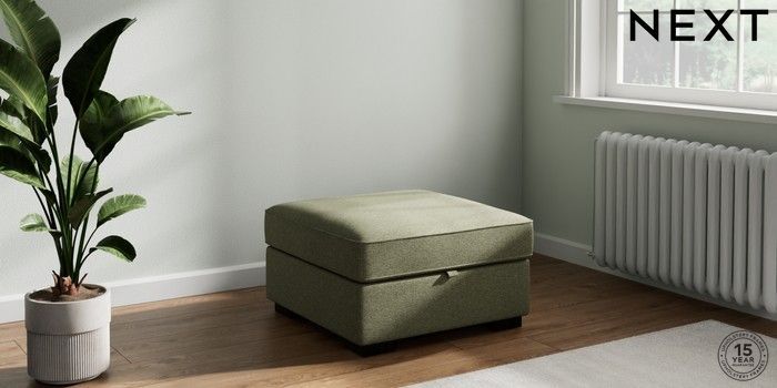 7.2.10 Stamford Storage Footstool Tweedy Chenille Mid Moss Green Square Angle - Dark | Made Click here to use our website with more accessibility support, for example screen readers