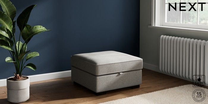 7.2.10 Stamford Storage Footstool Woven Chenille Easy Clean Light Grey Square Angle - Dark | Made Click here to use our website with more accessibility support, for example screen readers