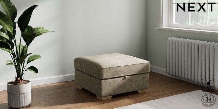 7.2.10 Stamford Storage Footstool Woven Chenille Easy Clean Mid Natural Square Angle - Light | Made Click here to use our website with more accessibility support, for example screen readers