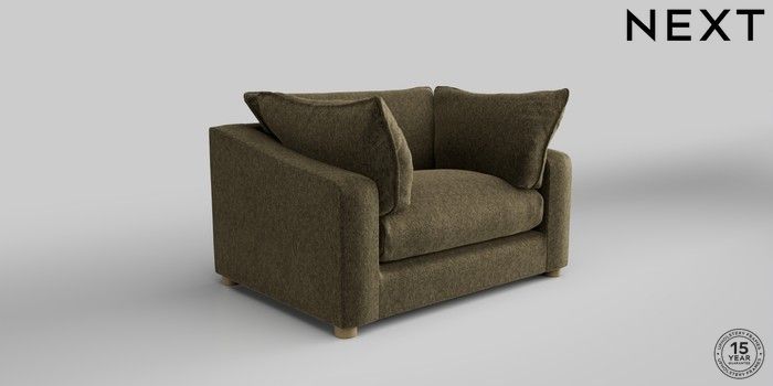 The sumptuous deep relaxed has chunky swooped arms drapy feather bolster cushionsso extra comfort french seam detail on the back cushions Seat cushions are relaxed sit, so need to be rotated to keep them looking their best. Seat cushions are reversible Deep sit, so has generous seat low tube foot, available in 3 colourways