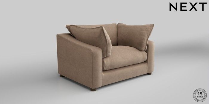 The sumptuous deep relaxed has chunky swooped arms drapy feather bolster cushionsso extra comfort french seam detail on the back cushions Seat cushions are relaxed sit, so need to be rotated to keep them looking their best. Seat cushions are reversible Deep sit, so has generous seat low tube foot, available in 3 colourways