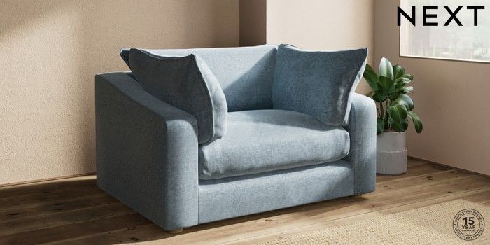 7.2.10 The Sumptuous Deep Relaxed Sit 2 Seater Small Sofa Plush Chenille Light Blue Low Tube - Light | Made Click here to use our website with more accessibility support, for example screen readers