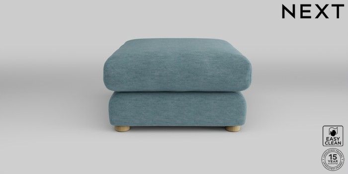 7.2.10 The Sumptuous Deep Relaxed Sit Footstool Fine Chenille Easy Clean Mid Blue Low Tube - Light | Made Click here to use our website with more accessibility support, for example screen readers