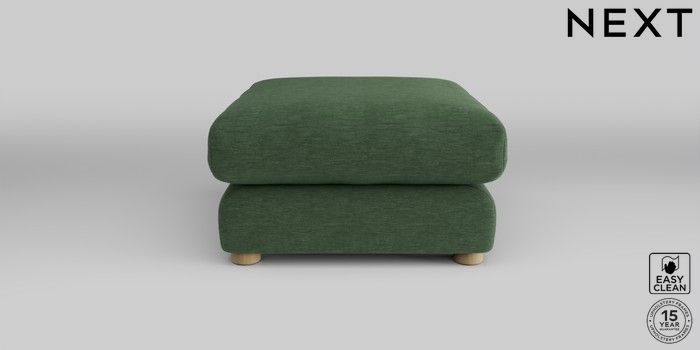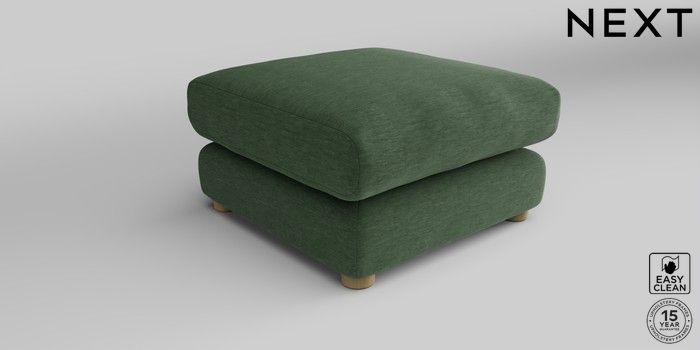 7.2.10 The Sumptuous Deep Relaxed Sit Footstool Fine Chenille Easy Clean Mid Khaki Green Low Tube - Light | Made Click here to use our website with more accessibility support, for example screen readers