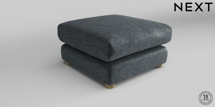 7.2.10 The Sumptuous Deep Relaxed Sit Footstool Plush Chenille Slate Blue Low Tube - Light | Made Click here to use our website with more accessibility support, for example screen readers
