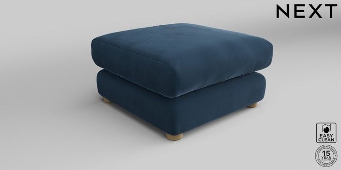 7.2.10 The Sumptuous Deep Relaxed Sit Footstool Plush Velvet Easy Clean Airforce Blue Low Tube - Light | Made Click here to use our website with more accessibility support, for example screen readers