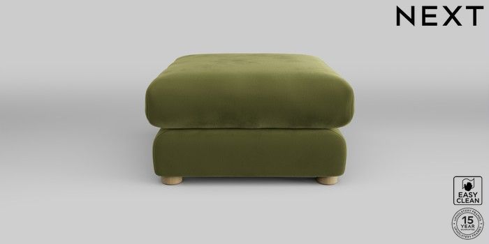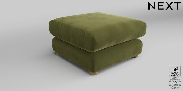 7.2.10 The Sumptuous Deep Relaxed Sit Footstool Plush Velvet Easy Clean Mid Olive Green Low Tube - Light | Made Click here to use our website with more accessibility support, for example screen readers