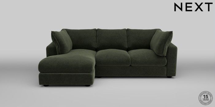7.2.10 The Sumptuous Deep Relaxed Sit Medium Sofa Chaise - Left Hand Boucle Chenille Dark Moss Green Low Tube - Dark | Made Click here to use our website with more accessibility support, for example screen readers
