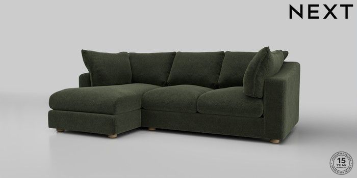 7.2.10 The Sumptuous Deep Relaxed Sit Medium Sofa Chaise - Left Hand Boucle Chenille Dark Moss Green Low Tube - Light | Made Click here to use our website with more accessibility support, for example screen readers