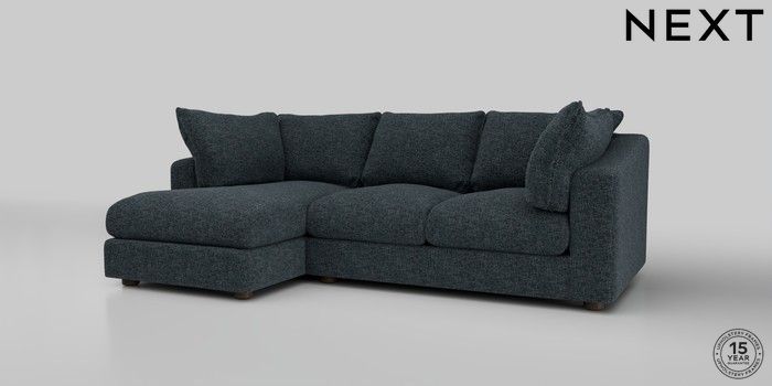 7.2.10 The Sumptuous Deep Relaxed Sit Medium Sofa Chaise - Left Hand Chunky Chenille Dark Navy Blue Low Tube - Mid | Made Click here to use our website with more accessibility support, for example screen readers