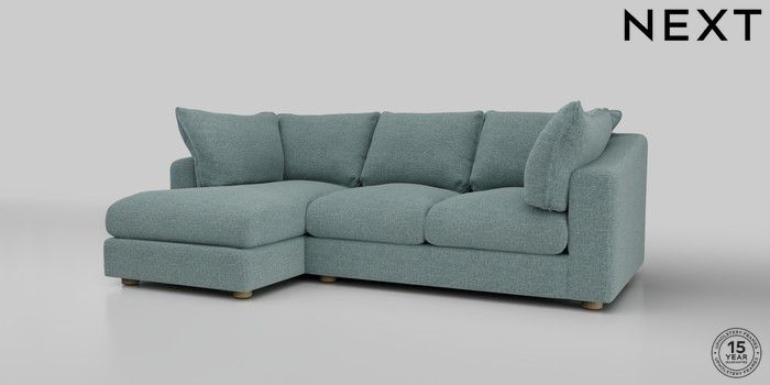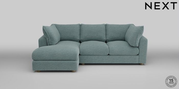 7.2.10 The Sumptuous Deep Relaxed Sit Medium Sofa Chaise - Left Hand Chunky Chenille Light Teal Green Low Tube - Light | Made Click here to use our website with more accessibility support, for example screen readers