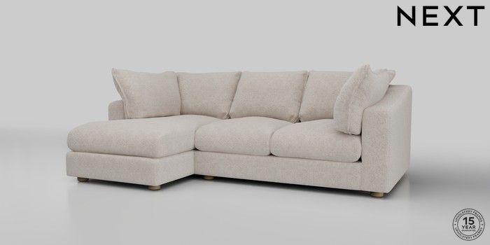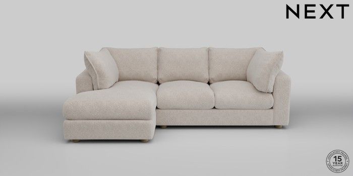 7.2.10 The Sumptuous Deep Relaxed Sit Medium Sofa Chaise - Left Hand Chunky Chenille Oyster Low Tube - Light | Made Click here to use our website with more accessibility support, for example screen readers