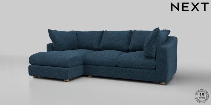 7.2.10 The Sumptuous Deep Relaxed Sit Medium Sofa Chaise - Left Hand Cotswold Chenille Dark Blue Low Tube - Light | Made Click here to use our website with more accessibility support, for example screen readers