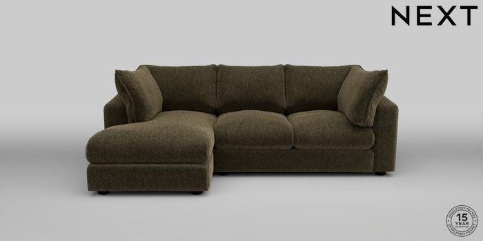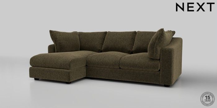 7.2.10 The Sumptuous Deep Relaxed Sit Medium Sofa Chaise - Left Hand Cotswold Chenille Dark Green Low Tube - Dark | Made Click here to use our website with more accessibility support, for example screen readers
