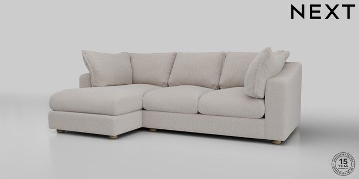 7.2.10 The Sumptuous Deep Relaxed Sit Medium Sofa Chaise - Left Hand Cotswold Chenille Oyster Low Tube - Light | Made Click here to use our website with more accessibility support, for example screen readers