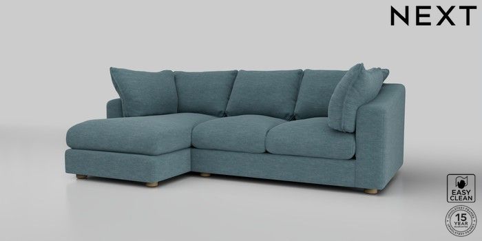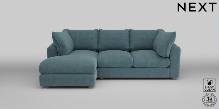 7.2.10 The Sumptuous Deep Relaxed Sit Medium Sofa Chaise - Left Hand Fine Chenille Easy Clean Mid Blue Low Tube - Light | Made Click here to use our website with more accessibility support, for example screen readers