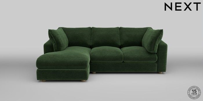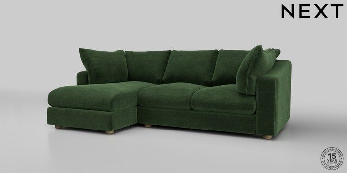 7.2.10 The Sumptuous Deep Relaxed Sit Medium Sofa Chaise - Left Hand Luxe Chenille Dark Green Low Tube - Light | Made Click here to use our website with more accessibility support, for example screen readers