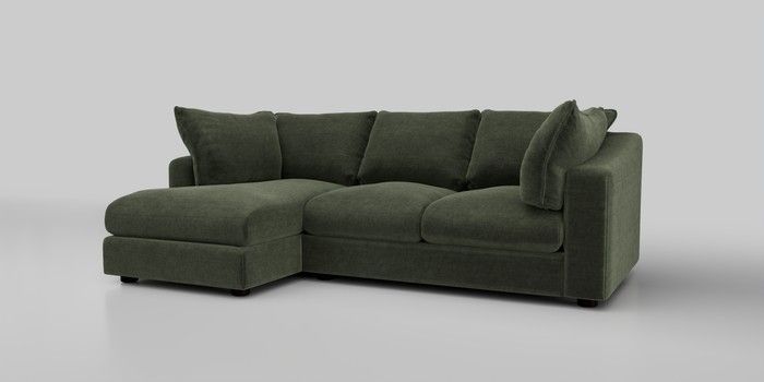 7.2.10 The Sumptuous Deep Relaxed Sit Medium Sofa Chaise - Left Hand Luxe Chenille Mid Green Low Tube - Dark | Made Click here to use our website with more accessibility support, for example screen readers