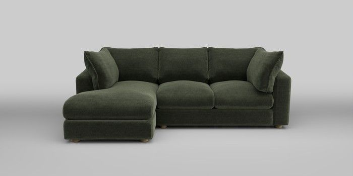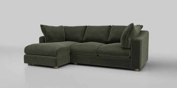 7.2.10 The Sumptuous Deep Relaxed Sit Medium Sofa Chaise - Left Hand Luxe Chenille Mid Green Low Tube - Light | Made Click here to use our website with more accessibility support, for example screen readers