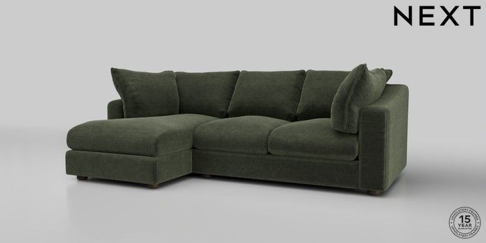 7.2.10 The Sumptuous Deep Relaxed Sit Medium Sofa Chaise - Left Hand Luxe Chenille Mid Green Low Tube - Mid | Made Click here to use our website with more accessibility support, for example screen readers