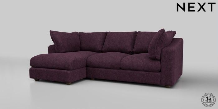 7.2.10 The Sumptuous Deep Relaxed Sit Medium Sofa Chaise - Left Hand Plush Chenille Dark Plum Purple Low Tube - Mid | Made Click here to use our website with more accessibility support, for example screen readers