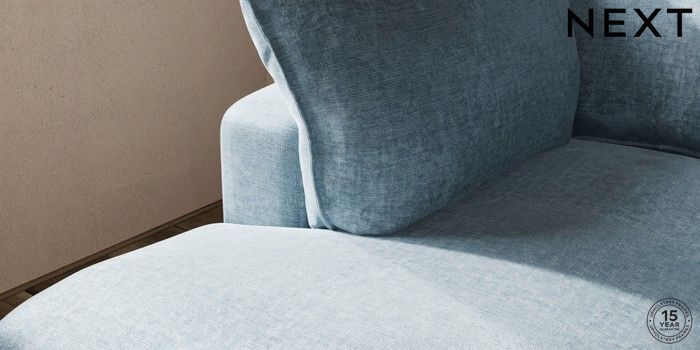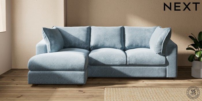 7.2.10 The Sumptuous Deep Relaxed Sit Medium Sofa Chaise - Left Hand Plush Chenille Light Blue Low Tube - Mid | Made Click here to use our website with more accessibility support, for example screen readers