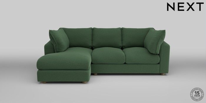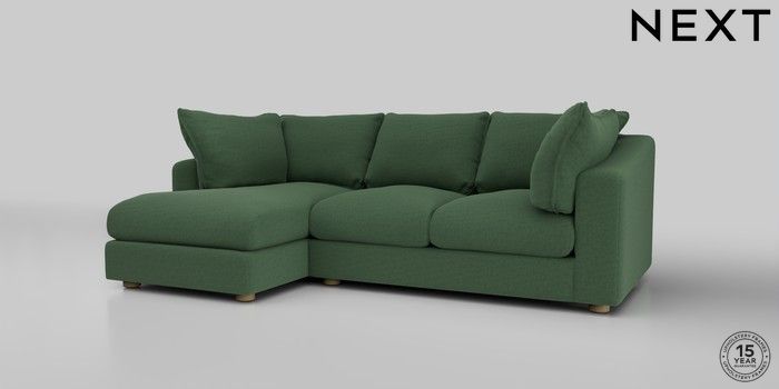 7.2.10 The Sumptuous Deep Relaxed Sit Medium Sofa Chaise - Left Hand Relaxed Linen Look Dark Green Low Tube - Light | Made Click here to use our website with more accessibility support, for example screen readers
