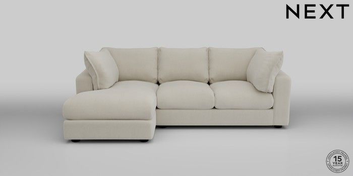 7.2.10 The Sumptuous Deep Relaxed Sit Medium Sofa Chaise - Left Hand Relaxed Linen Look Oyster Low Tube - Dark | Made Click here to use our website with more accessibility support, for example screen readers